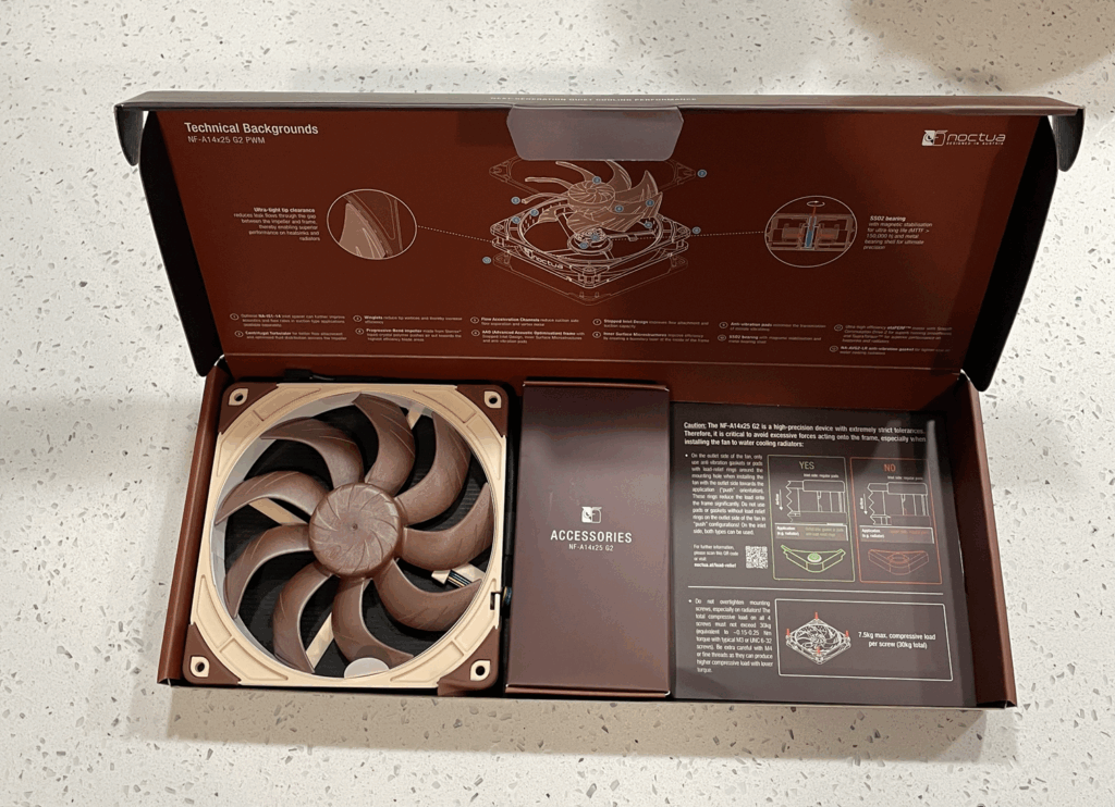 At first glance, the A14x25 G2 carries the familiar tan frame and brown rotor that Noctua has become known for. A closer look reveals how much engineering is packed into this generation.